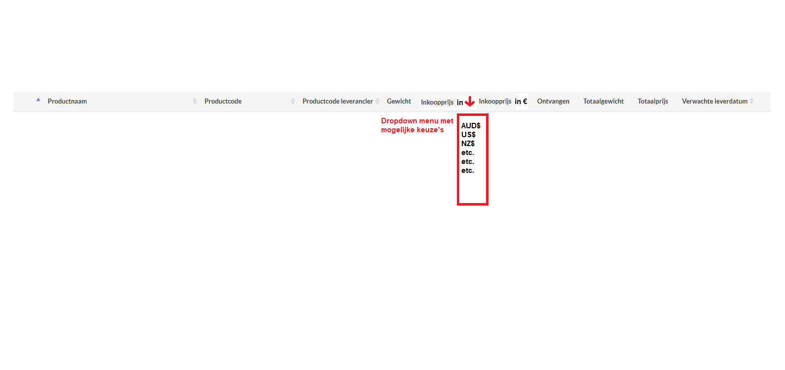 Ik ben op zoek naar de ontwikkeling van een tool binnen het Goedgepickt-platform waarmee ik verschillende valuta's kan invoeren bij inkooporders, zoals Australische dollars, Amerikaanse dollars, Chinese Yuan, enzovoort. Het belangrijkste doel is dat de tool de ingevoerde bedragen automatisch omzet naar euro's en deze geconverteerde waarde naast het oorspronkelijke bedrag weergeeft.